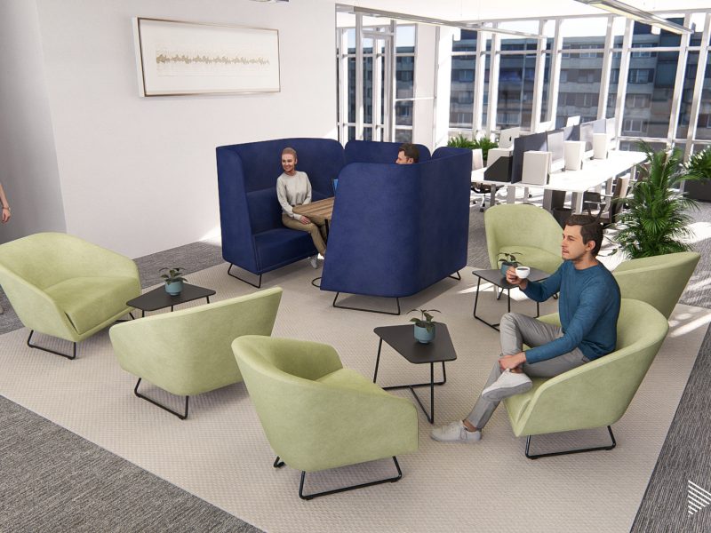 Közösségi és pihenőterek kialakítása segíti a munkavállalók kényelmét és jó közérzetét, ezáltal motiváltabbak lesznek és hosszabb távon hűségesebbek is lesznek a céghez.